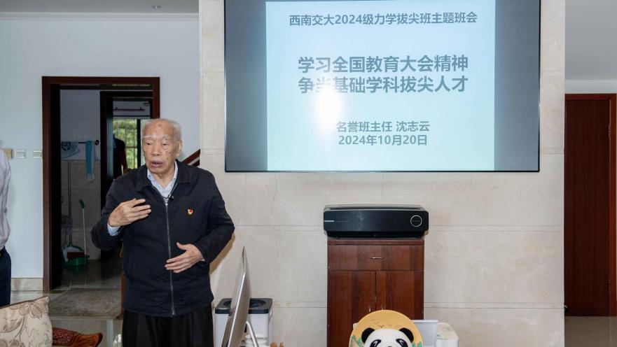 10月20日上午10点,中国科学院院士、中国工程院院士、力学拔尖班名誉班主任沈志云教授在峨眉校区带领力航师生开展学习全国教育大会精神活动。我院党委副书记孔祥彬、2024级拔尖班班导师张波等老师以及2024级力学拔尖班同学参加学习。学习会由孔祥彬主持。