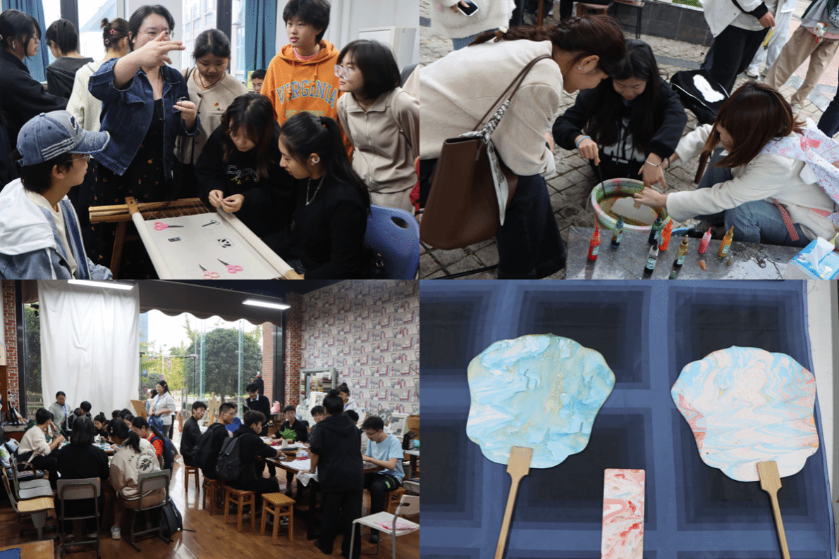 最后,成都纺织高等专科学校为师生们安排了蜀绣、扎染,漆扇、琉璃簪花等丰富多样的实践活动。师生们在专业指导下学习传统刺绣技艺,更深刻体会到蜀绣这一非物质文化遗产的独特魅力;学习并实践了扎染的制作过程,从设计图案、扎结布料到染色和拆结,每一步都充满了创意与乐趣。师生们通过亲身体验,感受到传统手工艺的无穷魅力与文化价值。