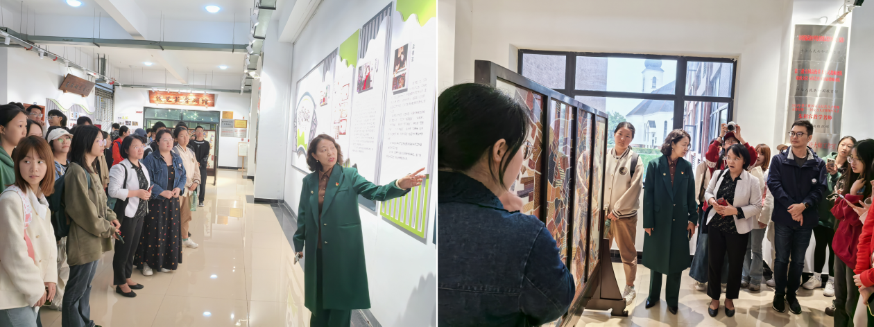 第二阶段三校师生齐聚成都纺织高等专科学校,开展非物质文化遗产——蜀绣参观体验活动。首先,师生们参观了蜀绣中心绣艺苑学研馆非遗文化传承基地,通过蜀绣传承创新成果的展示,引导师生们提高艺术修养和审美能力,扩大中华优秀传统文化的影响力,增强文化自信。