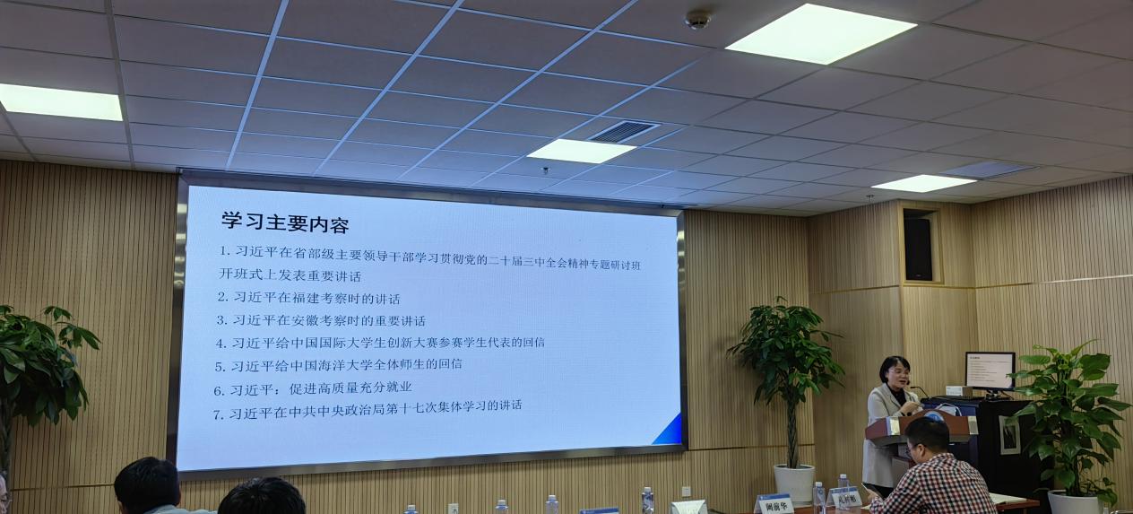 会议第三阶段,栗民领学了11月主题党日学习。参会党员同志认真学习了党的二十届三中全会精神,习近平总书记考察时的重要讲话精神,习近平总书记重要回信精神,习近平总书记《促进高质量充分就业》重要文章精神以及习近平文化思想。