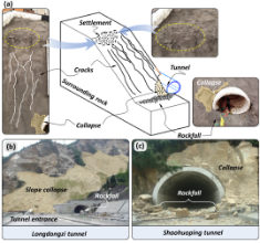 隧道是现代交通基础设施的关键组成部分,隧道洞口段由于埋深较浅、围岩条件较差、仰坡天然存在临空面等特点,受地震惯性作用明显,致使其在地震中往往承受比隧道洞身部位更大的震动作用。地震波在洞口区域的放大效应使其成为地震灾害中最易受损的部位,常表现为衬砌开裂、边坡滑塌和落石阻塞洞口等问题。这些损坏不仅严重影响隧道的安全性,更可能导致整个隧道无法正常运行。