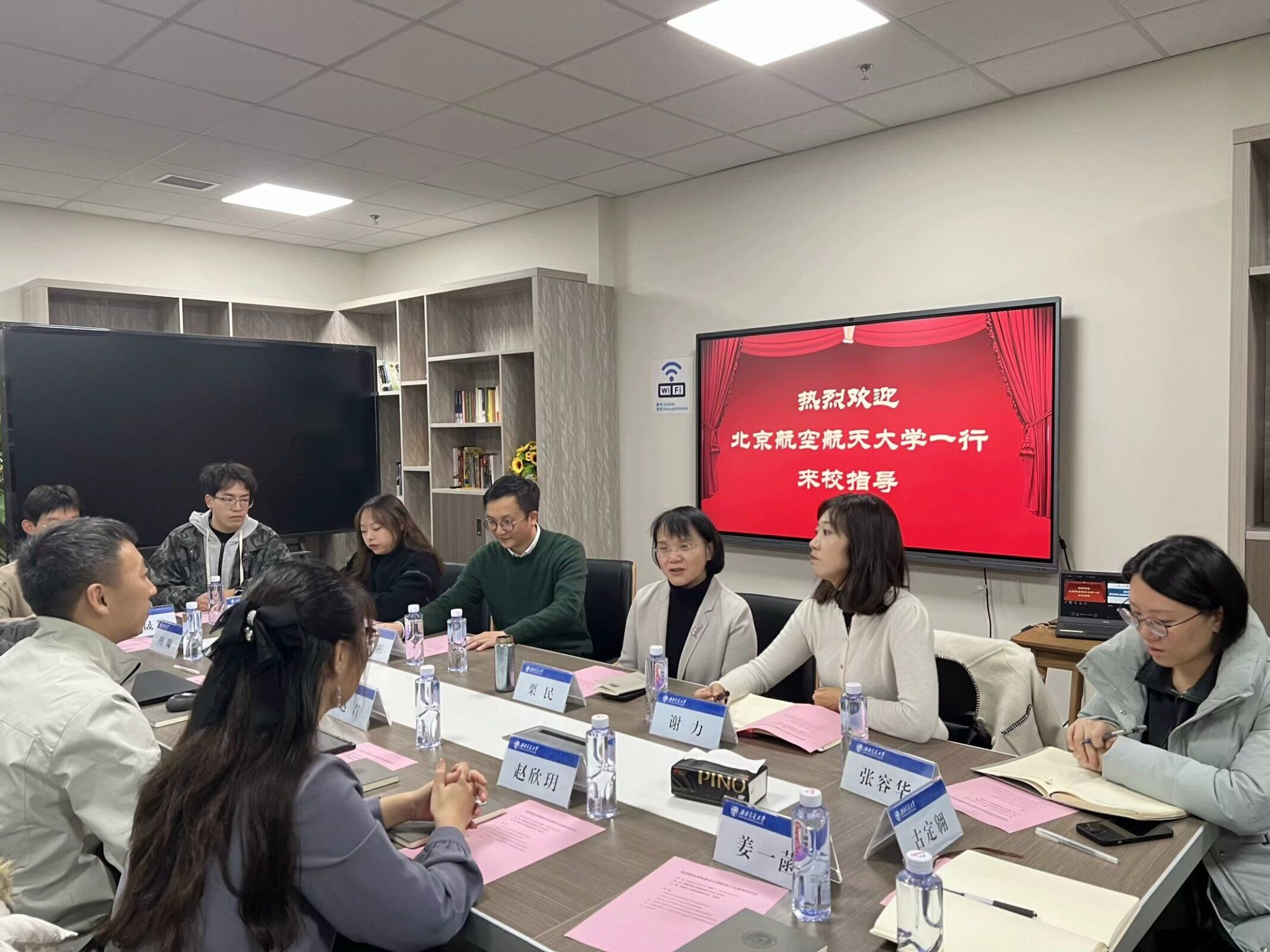 首先,栗民书记致欢迎辞,她对对北京航空航天大学一行来访表示热烈欢迎,对全国教育大会的重要意义进行了阐述,希望两校交流能够进一步加深友谊,共促立德树人。