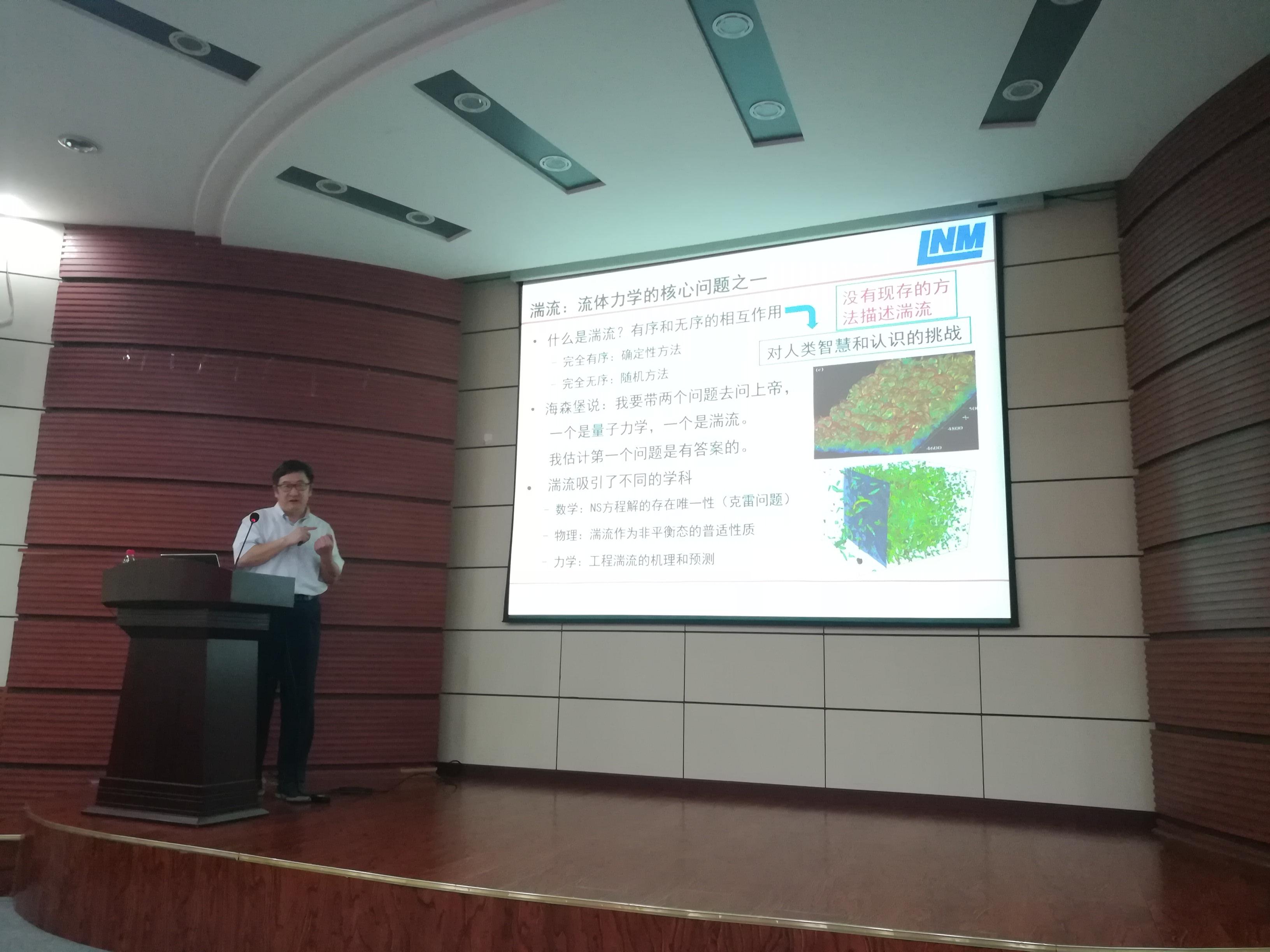 何国威院士从湍流的时间尺度开始介绍了湍流的时空耦合理论和计算机模拟方法。首先,何院士介绍了湍流的时空关联模型,它包Kraichnan-Tennekes 模型,Taylor 冻结流模型和最近发展的EA模型,它们是湍流解析理论的基础,并用于实验发现湍流的终极态;其次,何院士介绍了时空关联对飞机和船舶噪声的应用,特别是湍流噪声的超级计算机模拟方法;最后,讨论了湍流时空耦合的三个前沿问题;湍流的去关联过程,时间精准的计算机模拟和基于大数据的时空能谱重构。