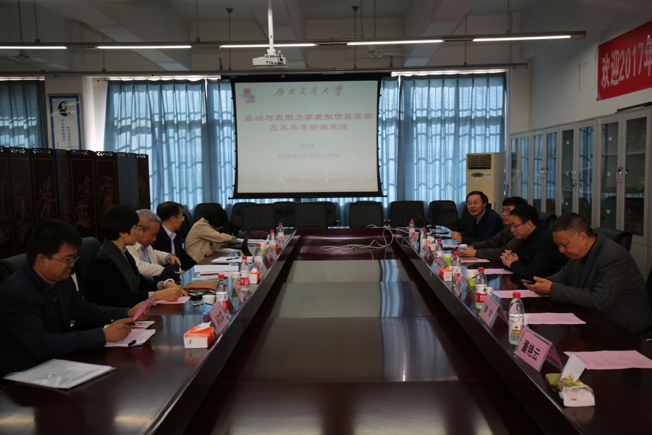 我校资产与实验室管理处处长钟冲、副处长董艳云代表学校对教育部教育装备研究与发展中心刘俊波处长一行的到来表示了热烈的欢迎;由力学实验中心主任高芳清陪同,刘俊波处长一行5人对我校力学实验中心、交通运输实验中心的虚拟仿真实验教学与应用情况进行了现场考察;随后,全体与会人员在力学实验中心会议室召开了虚拟仿真实验教学项目建设、应用及开放共享机制专题调研座谈会。会中,刘俊波处长对高校虚拟仿真教学资源体系和技术体系标准化相关研究与调研工作了介绍,文福安教授就虚拟仿真实验教学项目的建设与应用提出了研讨,高芳清主任做了“基础与应用力学虚拟仿真实验及其共享资源”专题报告,我校龚晖教授、朱志武教授、邓灼志主任分别就现代信息化教育技术、教学资源开放共享与管理、虚拟仿真实验教学项目开发与应用等做了主题发言。在上述考察与交流基础上,与会人员对高校教育教学信息化技术、虚拟仿真实验资源的开发、建设、装备与应用、开放及共享等方面的现状、经验和问题进行了广泛而深入的研讨。