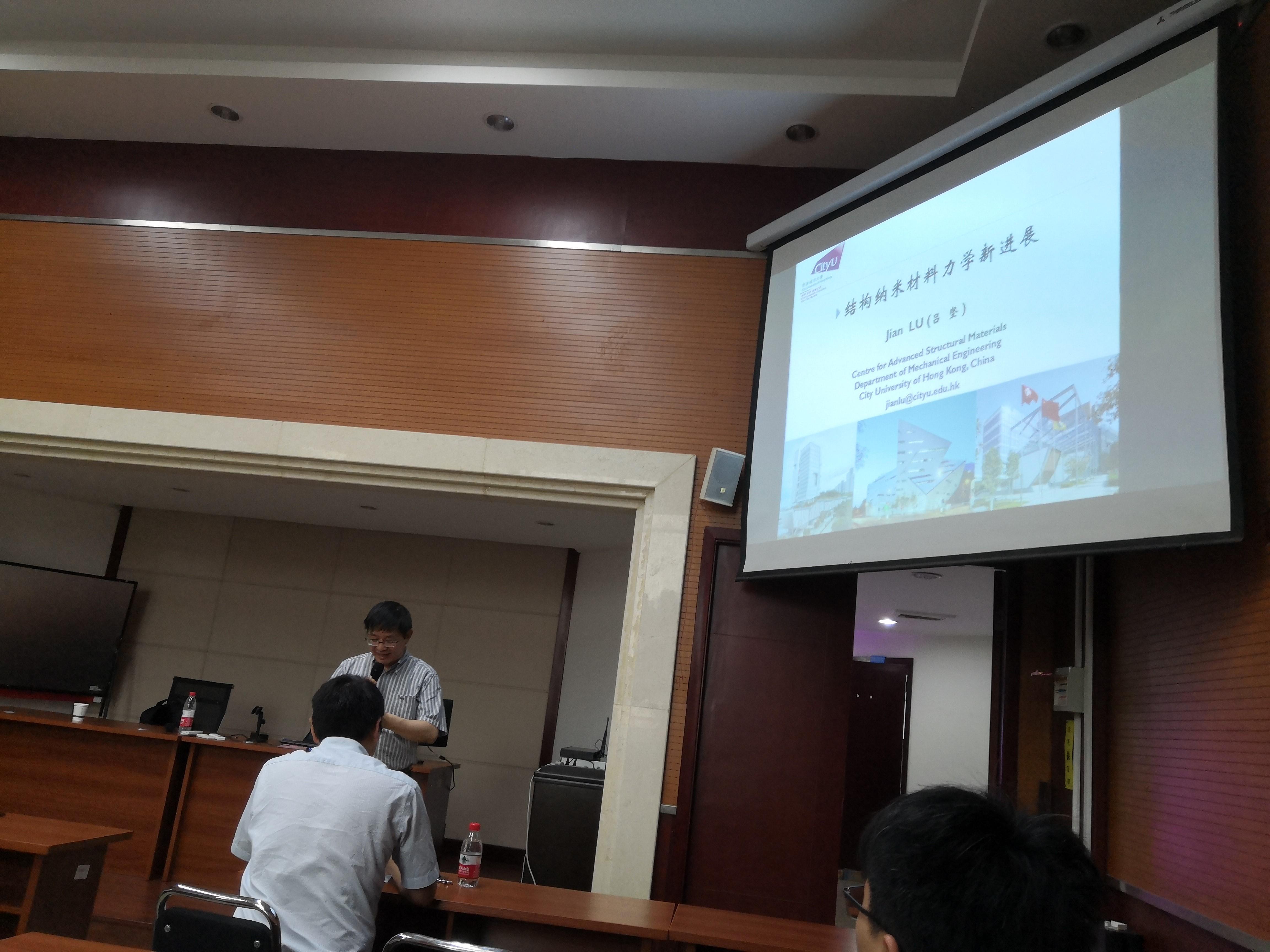 2019710日,香港城市大学副校长吕坚院士来我院进行学术交流,并做题为结构纳米材料力学新进展的报告,报告吸引了学院众多师生参加,我院院长康国政教授、副院长李翔宇教授、副院长阚前华教授以及成志强教授、李映辉教授、师明星教授和刘金铃教授等老师出席了学术报告会。会议由李翔宇教授主持。