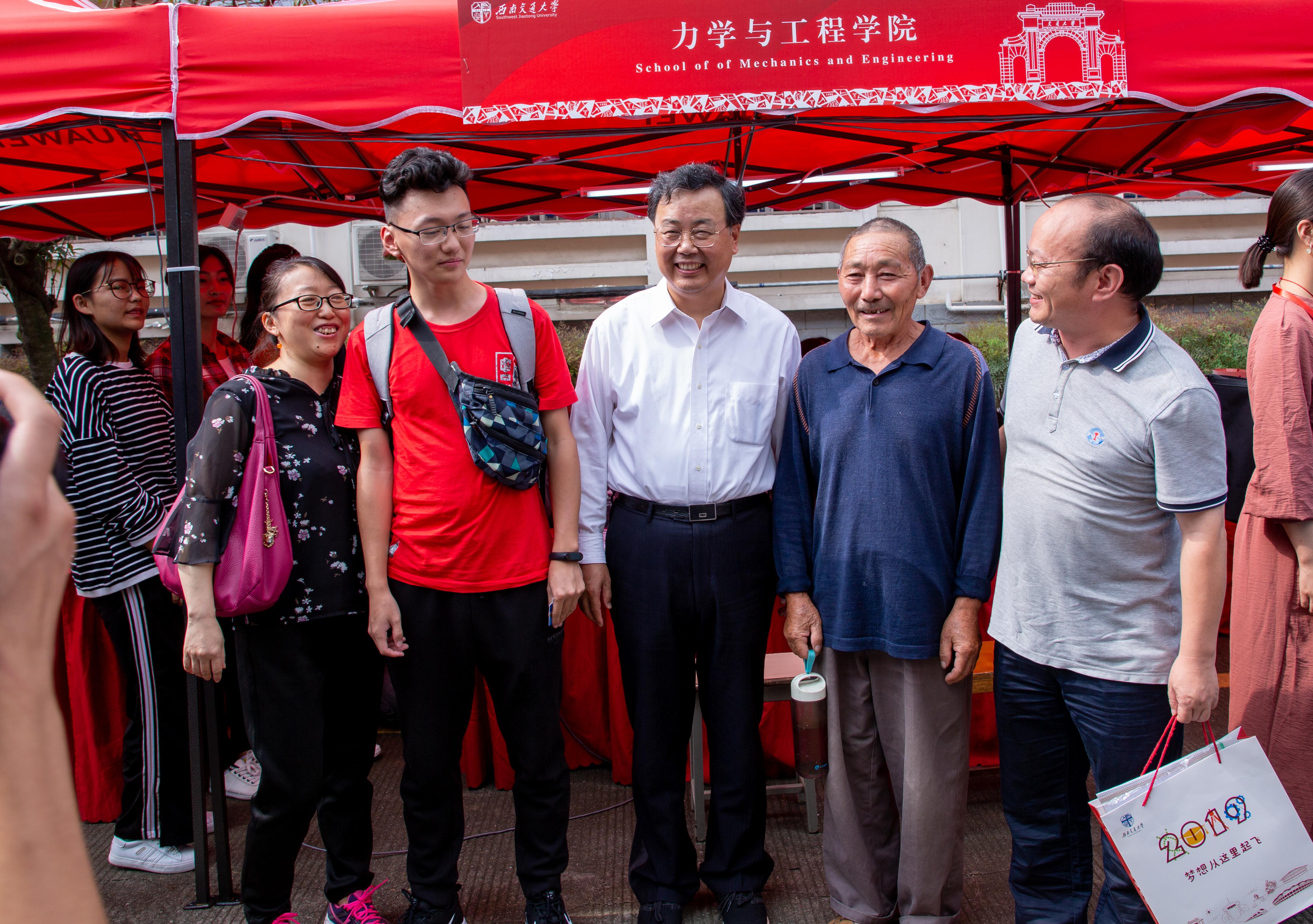 下午,学校党委书记王顺洪、校长杨丹来到各学院迎新点,了解学院迎新情况,孔祥彬老师详细介绍了力学学院这次的迎新工作安排以及新生报到情况。