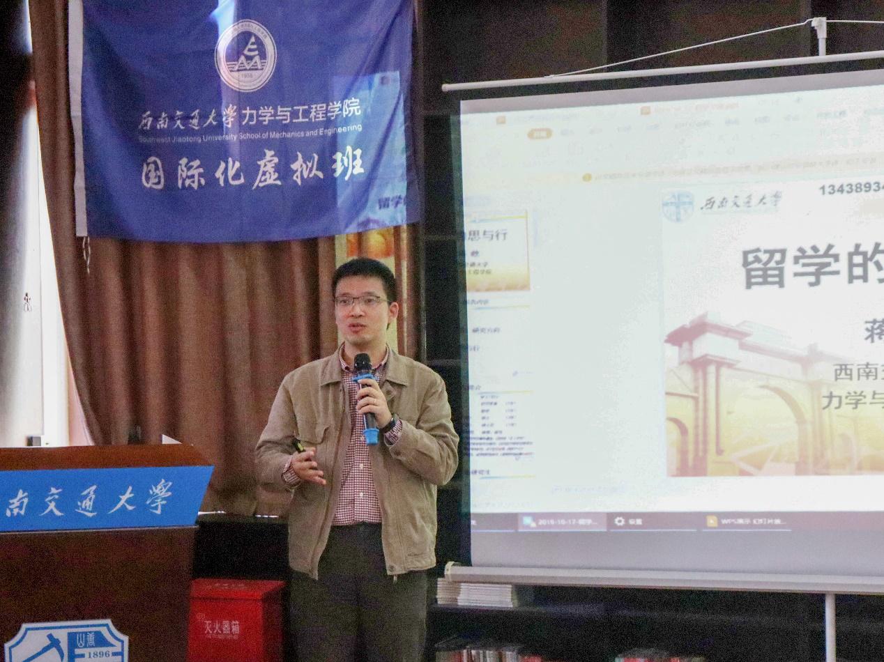 为了让更多有想法同学深入了解与本专业留学相关知识,力学与工程学院10月17日下午在机车博物园举办了“力行世界”留学沙龙第二期活动。本次活动由校战略规划处副处长、力学与工程学院蒋晗教授主讲,青年志愿者协会承办。