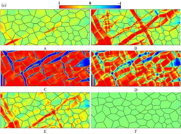 首先,基于经典的Ginzburg-Landau理论,通过引入额外晶界能来改进多晶系统的自由能函数,建立一个可以考虑温度连续变化的二维相场模型;通过求解建立的相场模型中序参量相关的相场动力学方程,模拟纳米多晶NiTi SMAs非弹性变形过程中的微结构演化。随后,通过建立的相场模型分别对应力、温度,以及热-力耦合加载下的不同晶粒尺寸的二维多晶系统进行了模拟,通过模拟所得系统的宏观应力-应变-温度响应和微结构演化来研究晶粒尺寸对纳米多晶NiTi SMA的超弹性,单程和应力辅助双程形状记忆效应的影响。