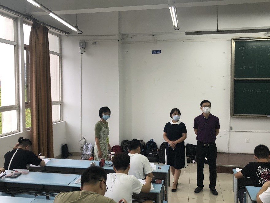 在巡考过程中,学院领导和老师深入考场了解考试情况,检查试卷,与监考老师仔细交流,询问相关工作安排和落实情况。