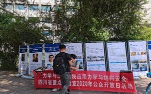 为积极响应《四川省科学技术厅关于四川省重点实验室在2020年科技活动周期间开展公众开放日活动的通知》的文件精神,西南交通大学力学与工程学院应用力学与结构安全四川省重点实验室根据自身特点与当前实际情况,设计出以“科学抗疫、创新强国”为主题的“力学公众开放及科普活动”,并于2020年8月24-29日圆满开展了公众开放日活动。该系列活动以展览形式在犀浦校区与九里校区同时进行,取得较好的社会反响。