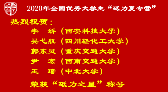 夏令营结营仪式上,力学与工程学院的高芳清副院长、阚前华副院长宣布:参加2020年全国优秀大学生“砥力夏令营”西安科技大学的李娇、四川轻化工大学吴弋航、重庆交通大学郭东灵、西南交通大学尹宏、中北大学王琦等5位同学获得 “砥力之星”称号并颁发奖学金,其他营员发放了优秀营员证。获得“砥力之星”称号和优秀营员证的同学在报考我院时,同等条件下将优先录取,推免免试研究生全部获得一等奖学金。最后高芳清副院长寄语参加夏令营的同学,并勉励夏令营的营员选择2020年来西南交大力学学院就读研究生。