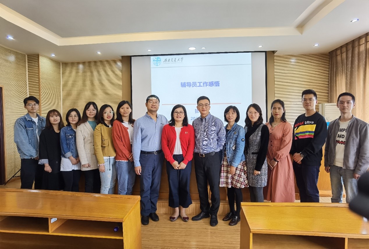 9月21日上午X1405,力学与工程学院与外国语学院联合举办辅导员沙龙,特邀四川省辅导员年度人物、西南交通大学电气工程学院辅导员张异老师分享工作经验。力学学院党委副书记孔祥彬、外国语学院党委副书记武俊以及力学、外语、人文等学院辅导员参加了本次座谈会。会议由力学学院学工组副组长杨婧主持。