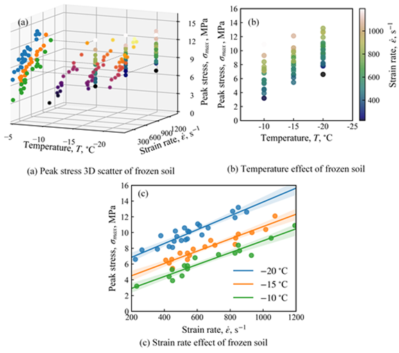随着寒区基础设施的建设和寒区经济的发展,越来越多的工程项目在寒区开展,保障寒区内重大工程项目的安全,成为寒区工程建设所面临的首要问题。而冻土作为寒区工程的主要承载体,研究冻土的冲击动态力学性能对指导工程建设具有重要的现实意义。近期,西南交通大学力学与工程学院朱志武教授团队在冻土冲击动态力学性能方面取得研究新进展,他们提出了在冲击加载条件下冻土应变率效应和温度效应的等效关系,并揭示了两者之间互相依赖的力学机理。相关研究成果以“A unified viscoplastic model and strain rate–temperature equivalence of frozen soil under impact loading”为题发表在固体力学领域旗舰期刊Journal of the Mechanics and Physics of Solids。