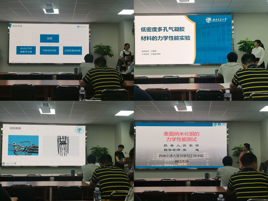 最后是答辩报告阶段,7月16日上午在X30224,同学们完成了实验报告与演示文稿的制作,并向10位指导老师进行其项目的汇报工作,老师并进行提问,给出了中肯的建议。这不仅是一场汇报答辩,更是一次思维火花的激烈碰撞,此次实习活动赢得了老师们的一致好评,也是力学拔尖班借助个性化实习提升创新能力培养的一次有益探索。