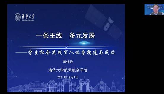 清华大学黄伟希作了题为“一条主线,多元发展:学生社会实践体系构建与成效”的报告,介绍了学院以“协同育人、多元发展、使命担当、空天报国”为理念,以“受教育、长才干、做贡献”为目标,构建了“启航蓝天”本科生专业认知实践平台、“大国起飞”研究生实践活动平台、“问天”本研联合参观实践项目等为主的学生社会实践协同育人体系,产生了多方面的显著效果。